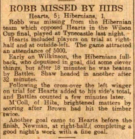 | Tue 30 Apr 1929 Hearts 5 Hibernian 1 | |||||||