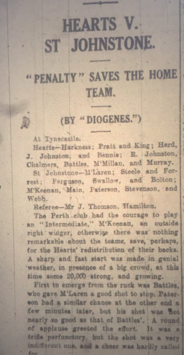 | Sat 28 Sep 1929 Hearts 2 St Johnstone 2 | |||||||