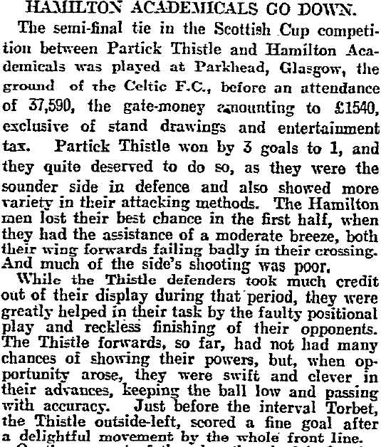 | Sat 22 Mar 1930 Rangers 4 Hearts 1 Sat 22 Mar 1930 Hibernian 1 Falkirk 0 |