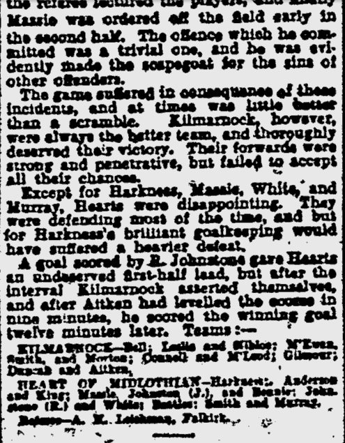 | Sat 26 Dec 1931 Kilmarnock 2 Hearts 1 | |||||||