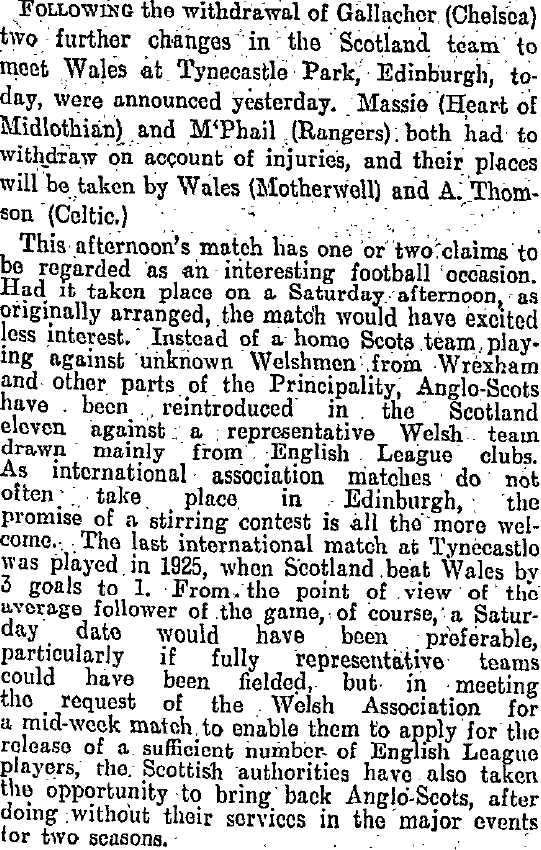 Wed 26 Oct 1932 Scotland 2 Wales 5