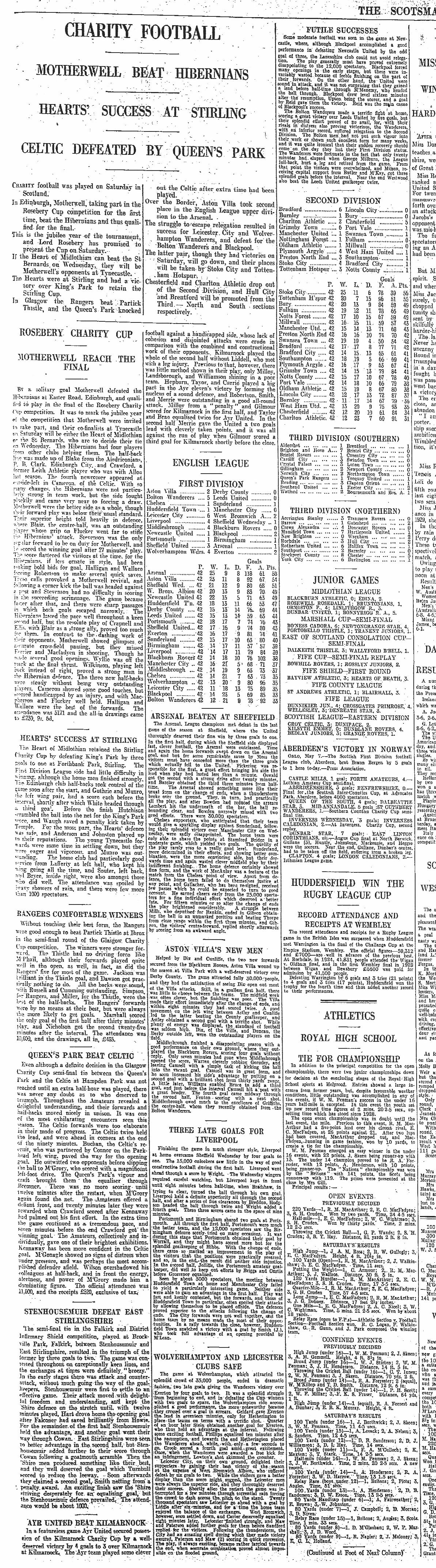 | Sat 06 May 1933 Kings Park 1 Hearts 3 Sat 06 May 1933 Hibernian 0 Motherwell 1 |