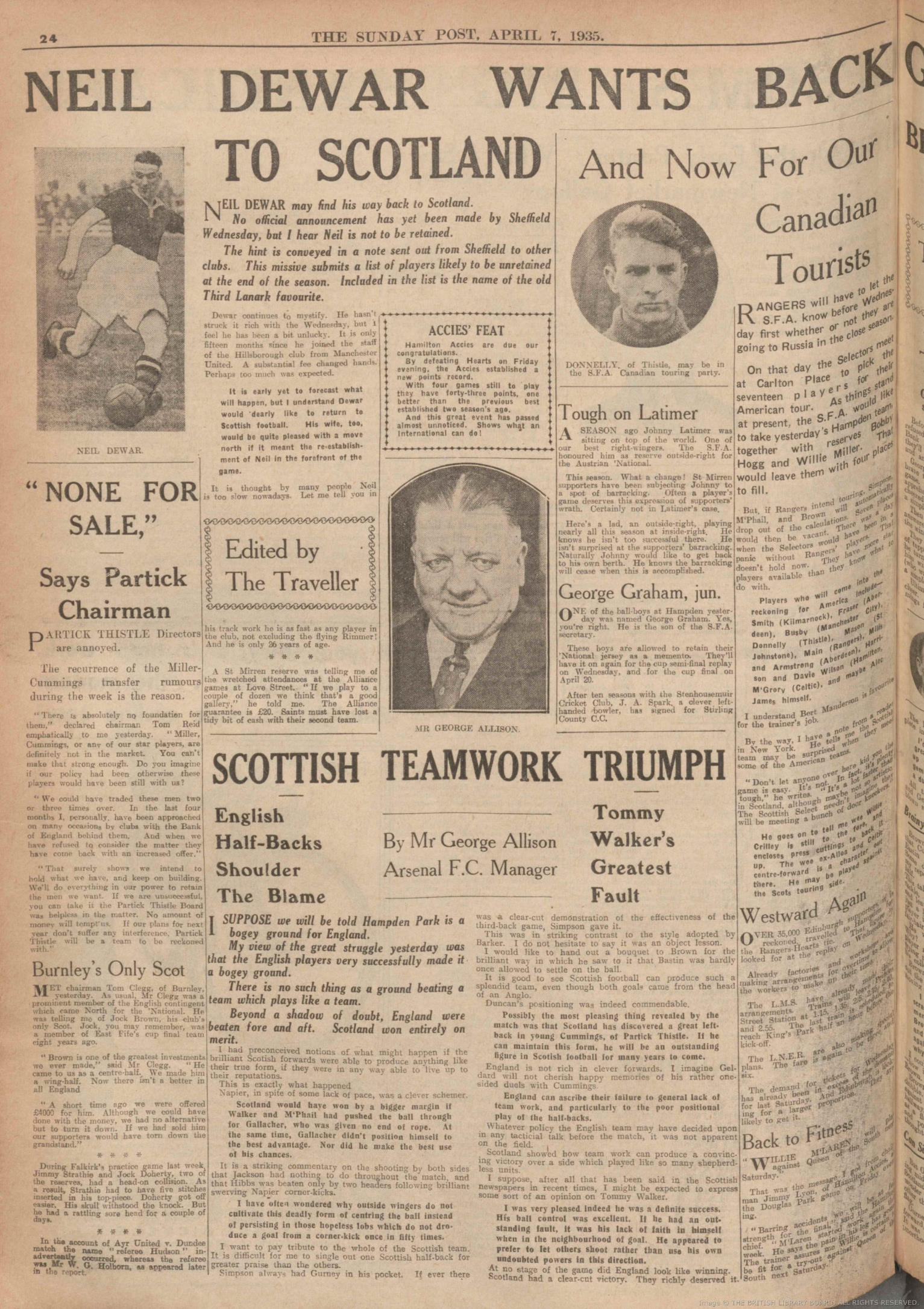 Sat 06 Apr 1935 Scotland 2 England 0