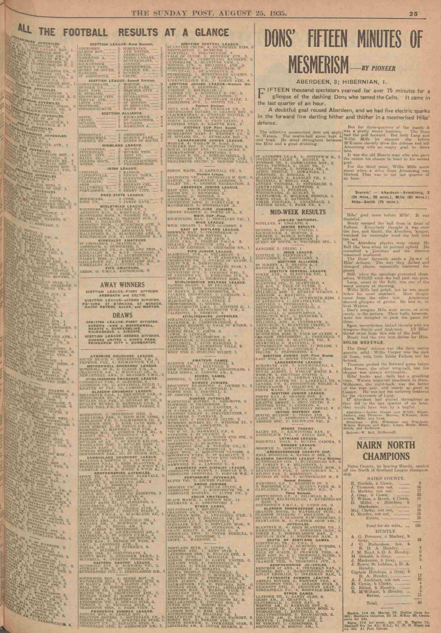 | Sat 24 Aug 1935 Hearts 1 Dunfermline Athletic 1 Sat 24 Aug 1935 Aberdeen 3 Hibernian 1 |