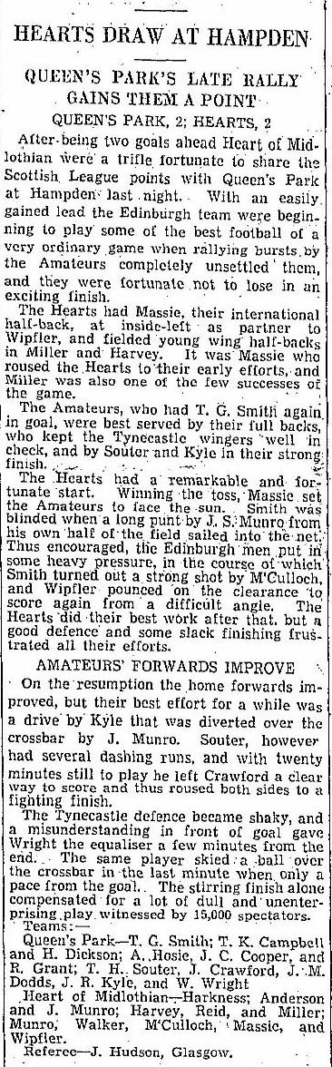 | Tue 27 Aug 1935 Queens Park 2 Hearts 2 | |||||||