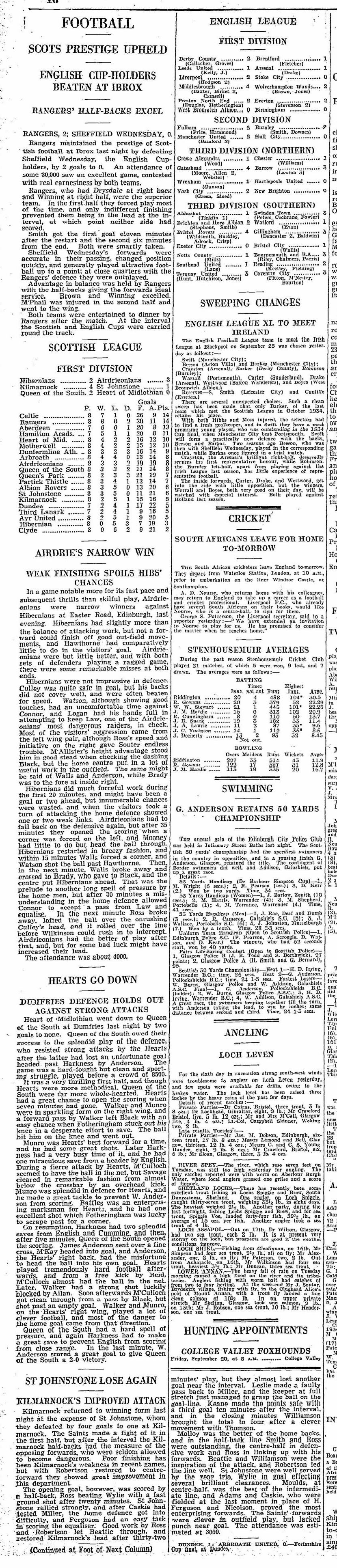 | Wed 18 Sep 1935 Queen of the South 2 Hearts 0 Wed 18 Sep 1935 Hibernian 2 Airdrieonians 3 |