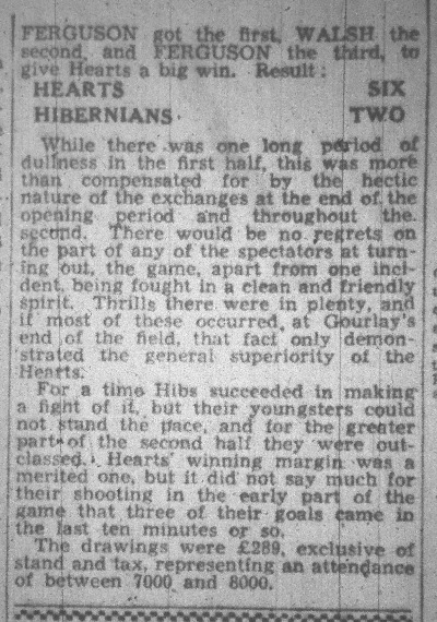 | Sat 17 Apr 1937 Hearts 6 Hibernian 2 | |||||||