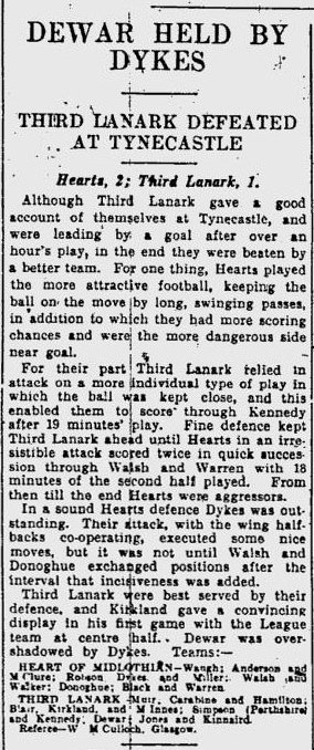 | Sat 28 Aug 1937 Hearts 2 Third Lanark 1 | |||||||