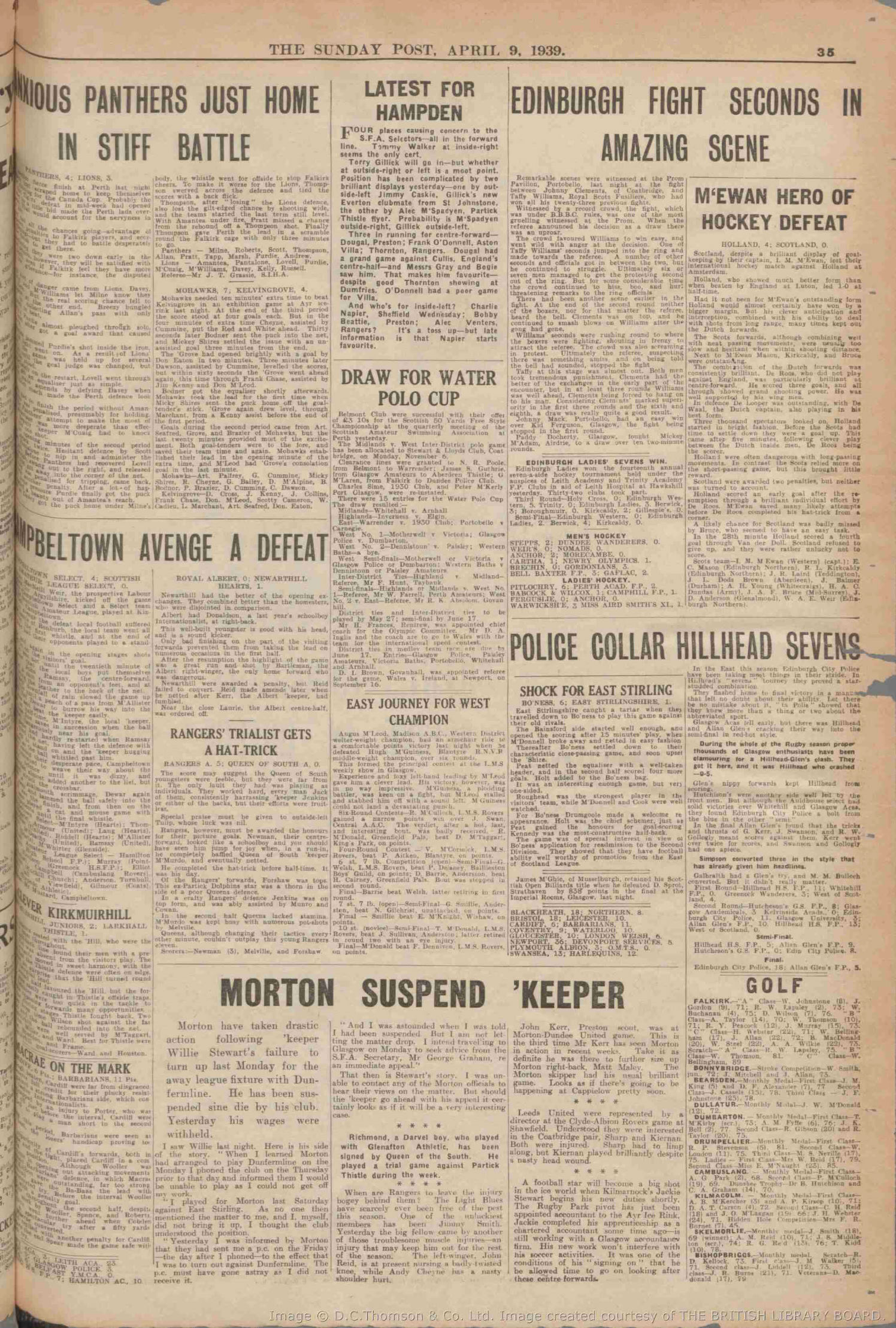 | Sat 08 Apr 1939 Kilmarnock 4 Hearts 1 | |||||||