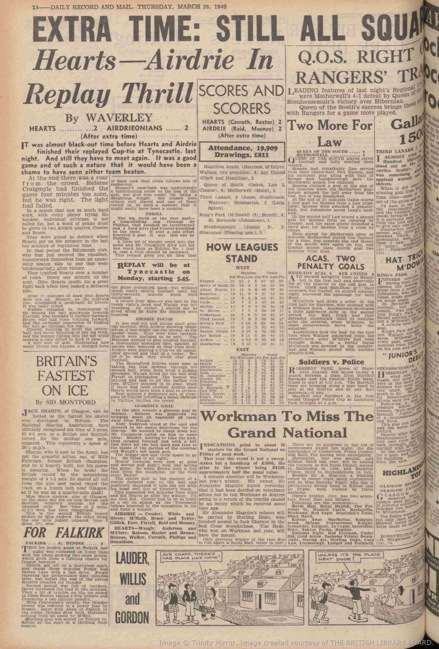 | Wed 27 Mar 1940 Hearts 2 Airdrieonians 2 | |||||||