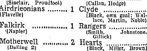 | Sat 10 Aug 1940 Motherwell 2 Hearts 3 | |||||||