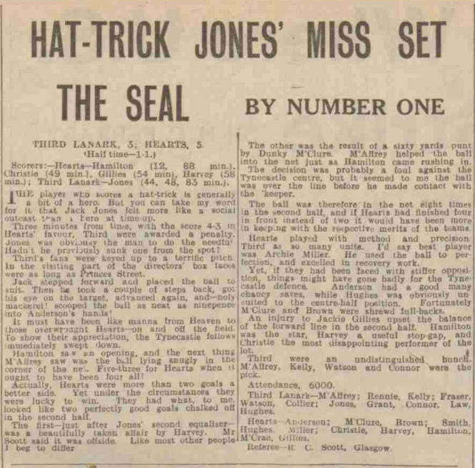 | Sat 14 Mar 1942 Third Lanark 3 Hearts 5 | |||||||