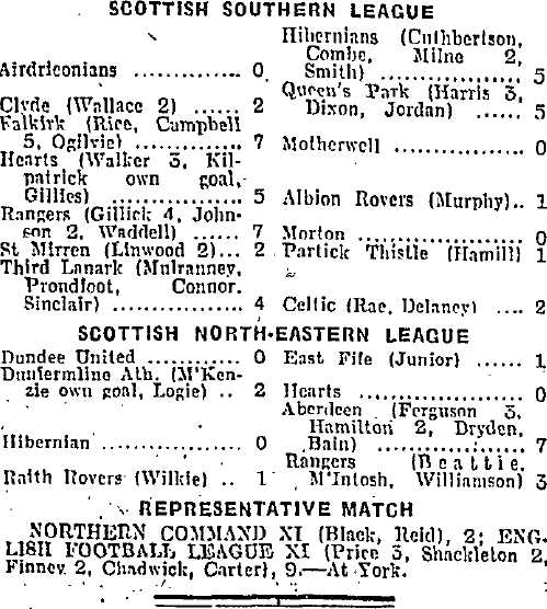 | Sat 17 Oct 1942 Hearts 5 Albion Rovers 1 | |||||||