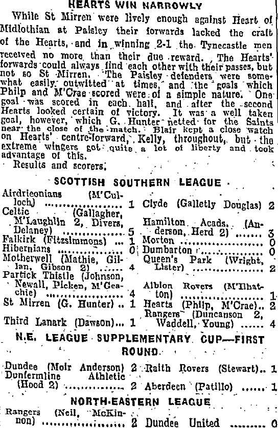 | Sat 16 Dec 1944 St Mirren 1 Hearts 2 Sat 16 Dec 1944 Hibernian 0 Dumbarton 0 |