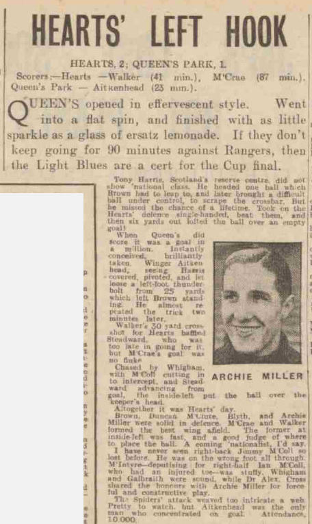 | Sat 07 Apr 1945 Hearts 2 Queens Park 1 | |||||||
