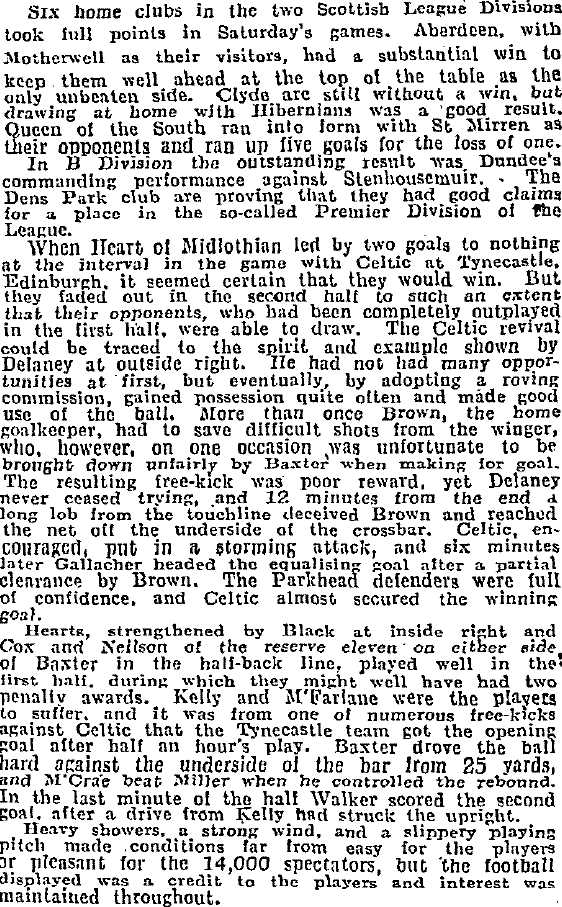 | Sat 22 Sep 1945 Hearts 2 Celtic 2 Sat 22 Sep 1945 Clyde 2 Hibernian 2 |