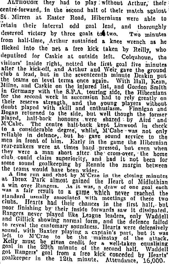 | Sat 17 Nov 1945 Rangers 1 Hearts 1 Sat 17 Nov 1945 Hibernian 3 St Mirren 2 |