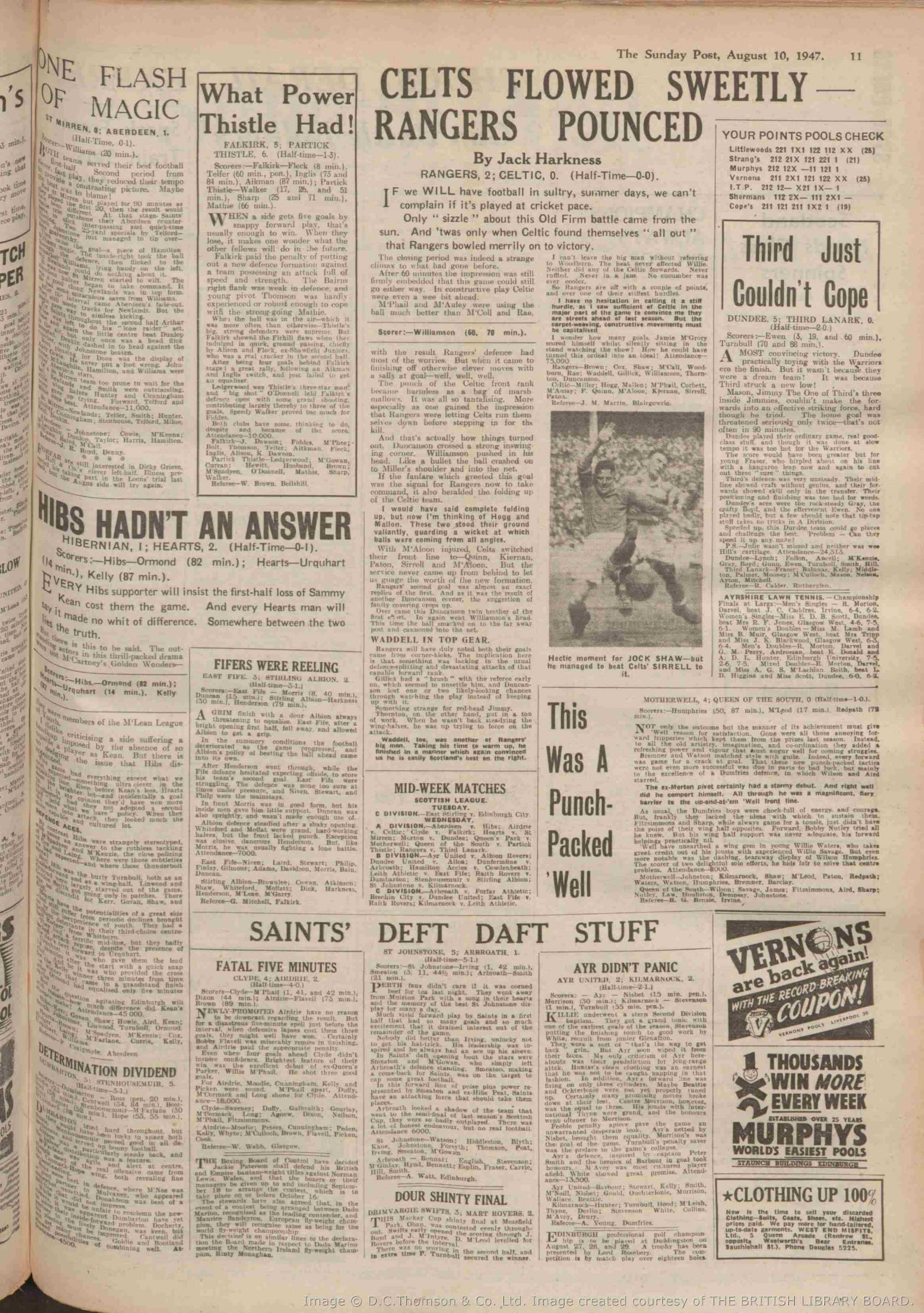 | Sat 09 Aug 1947 Hibernian 1 Hearts 2 | |||||||