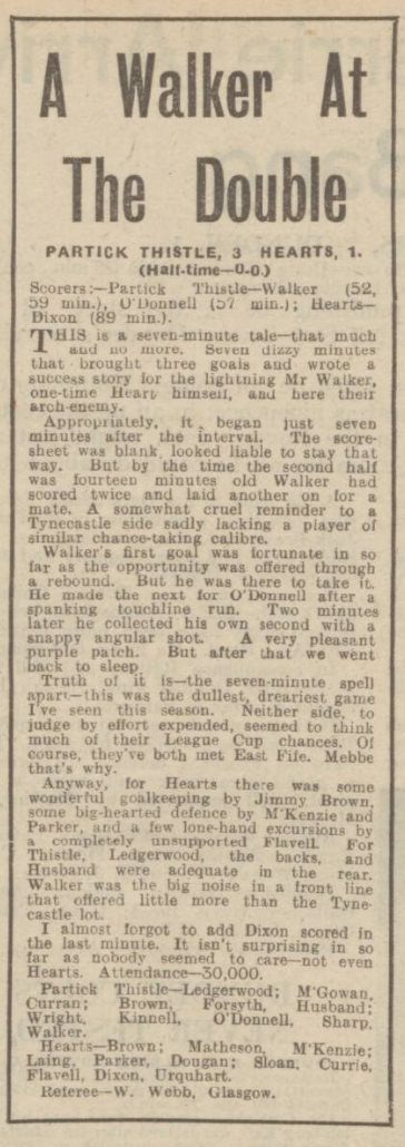 | Sat 02 Oct 1948 Partick Thistle 3 Hearts 1 | |||||||