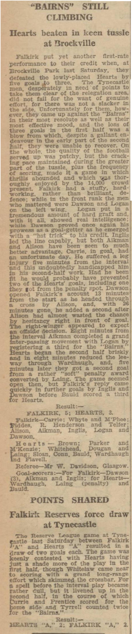 | Sat 13 Nov 1948 Falkirk 5 Hearts 3 | |||||||