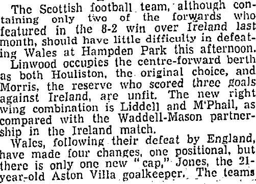 Wed 09 Nov 1949 Scotland 2 Wales 0