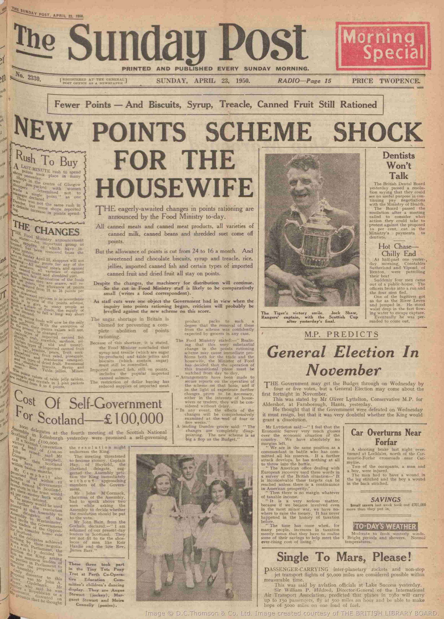 | Sat 22 Apr 1950 Hearts 6 Dundee 2 | |||||||