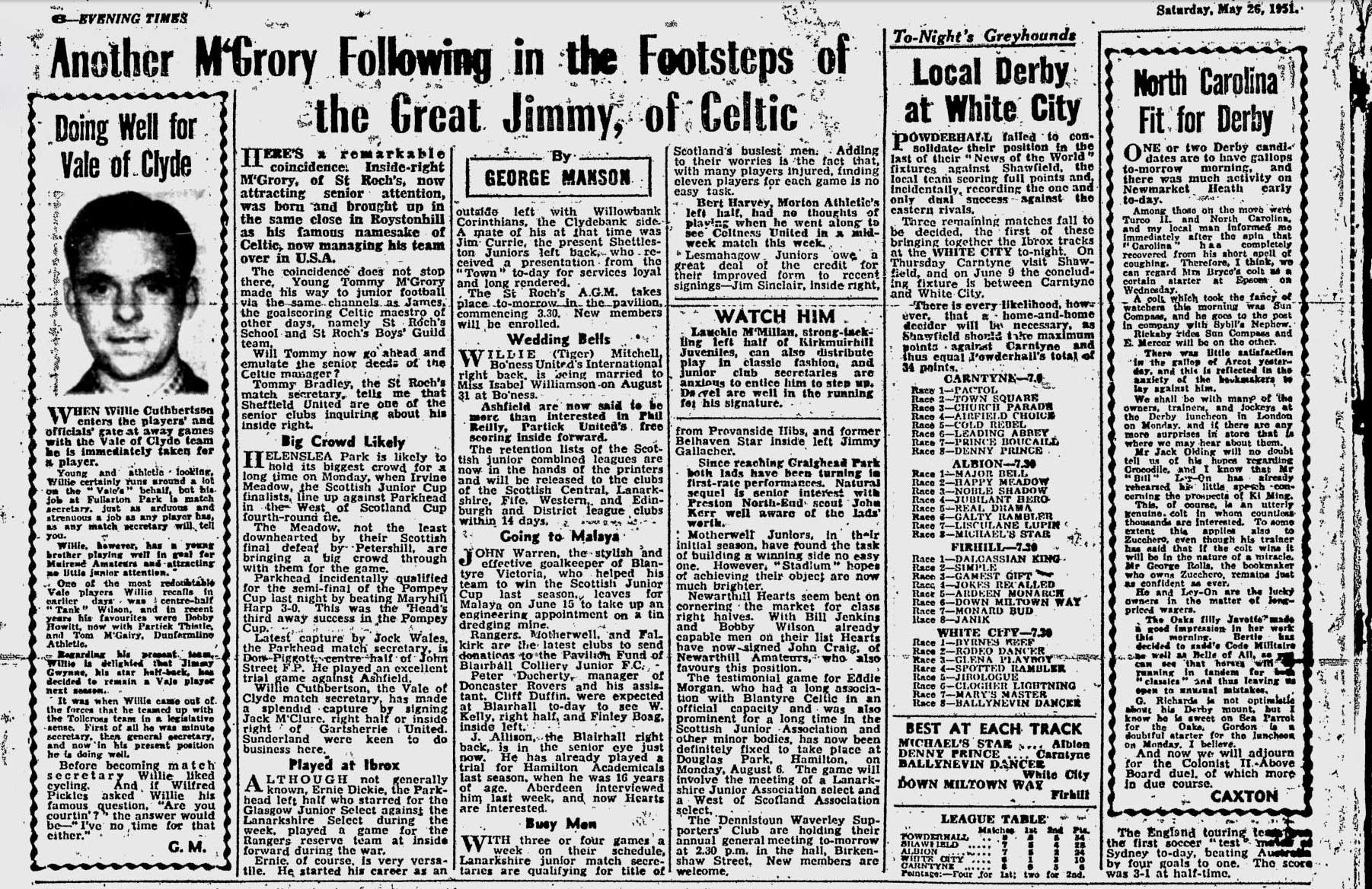 | Sat 26 May 1951 | |||||||