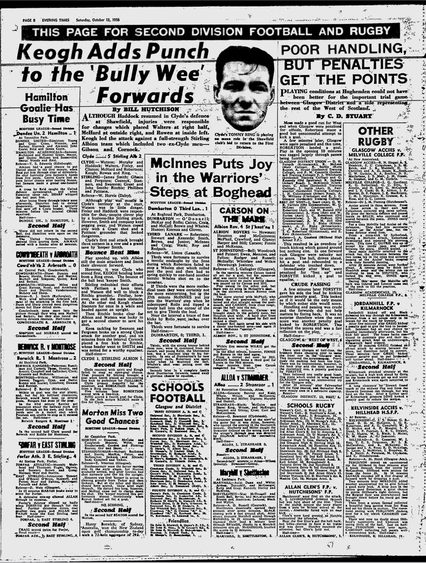 | Sat 13 Oct 1956 Hearts 2 East Fife 5 Sat 13 Oct 1956 Raith Rovers 1 Hibernian 1 |