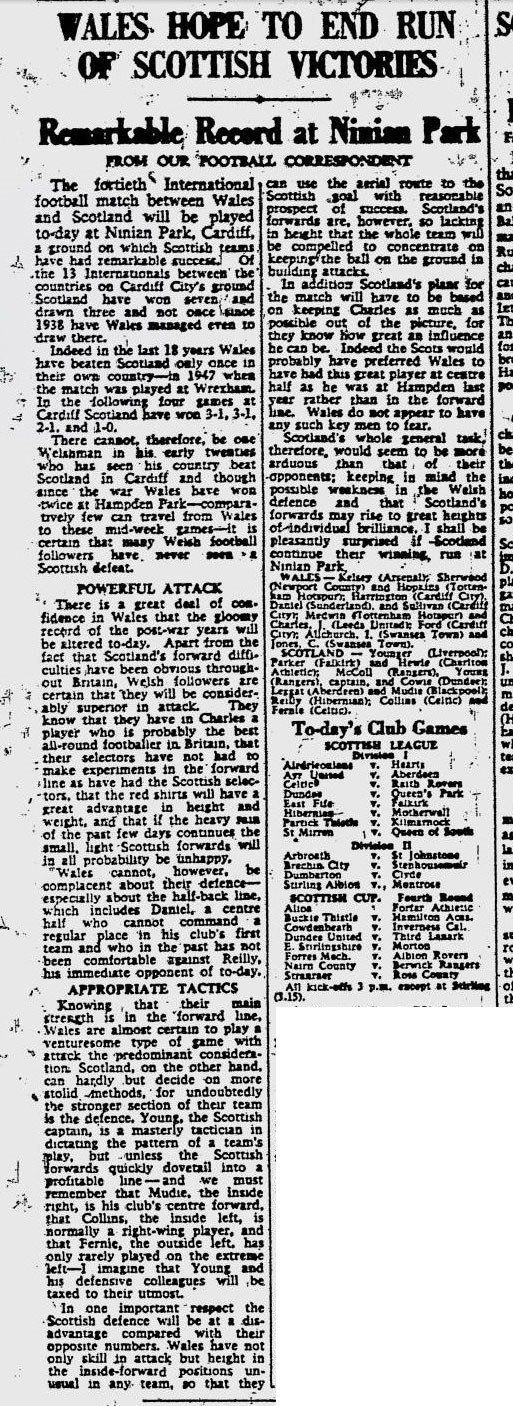 | Sat 20 Oct 1956 Wales 2 Scotland 2 Sat 20 Oct 1956 Airdrieonians 3 Hearts 4 Sat 20 Oct 1956 Hibernian 1 Motherwell 1 |