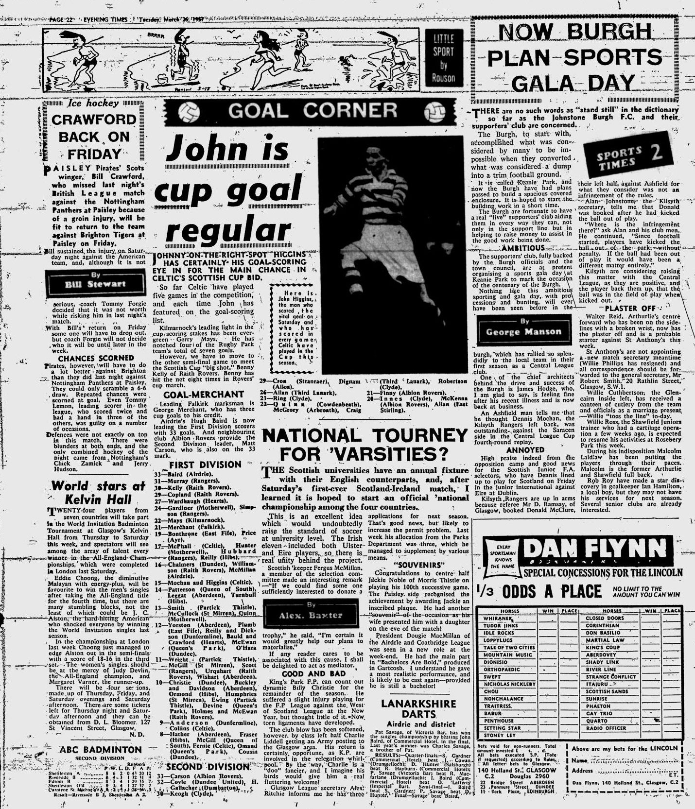 | Mon 25 Mar 1957 Queens Park 0 Hearts 1 | |||||||