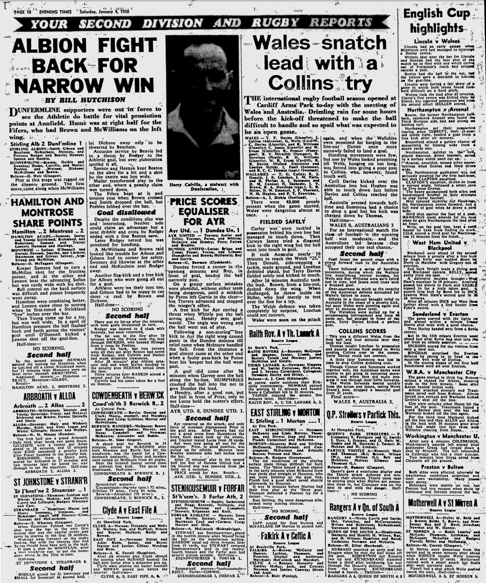 | Sat 04 Jan 1958 Dundee 0 Hearts 5 Sat 04 Jan 1958 Hibernian 0 Aberdeen 1 |