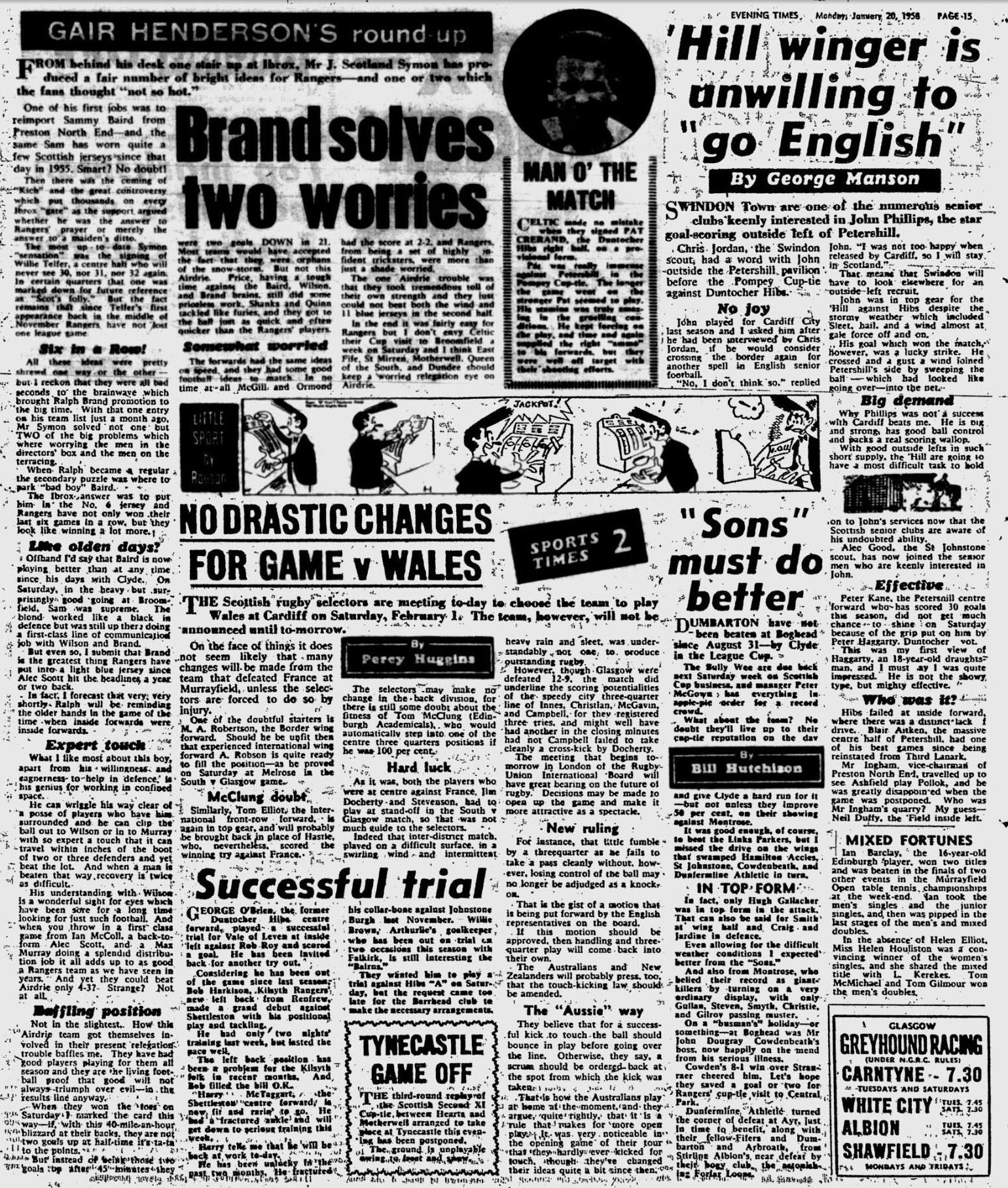 | Sat 18 Jan 1958 East Fife 0 Hearts 3 Sat 18 Jan 1958 Hibernian 3 Falkirk 3 |