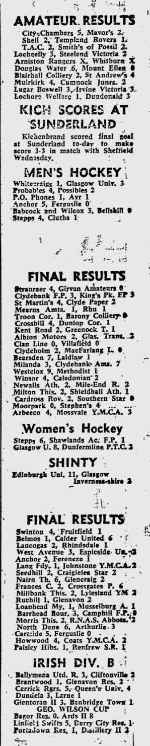 | Sat 08 Mar 1958 Queens Park 1 Hearts 4 | |||||||