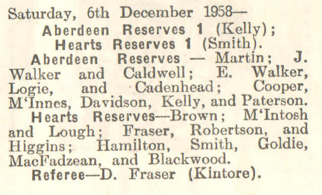 | Sat 06 Dec 1958 Hearts 5 Aberdeen 1 | |||||||