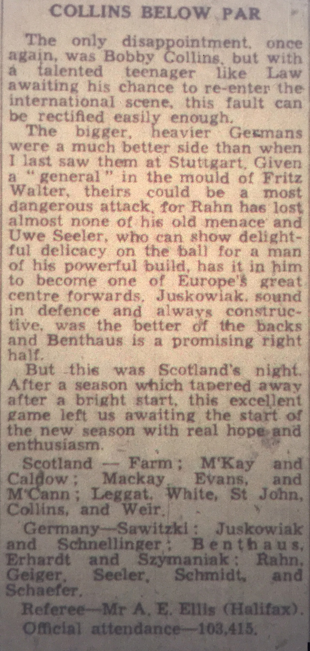 Wed 06 May 1959 Scotland 3 West Germany 2