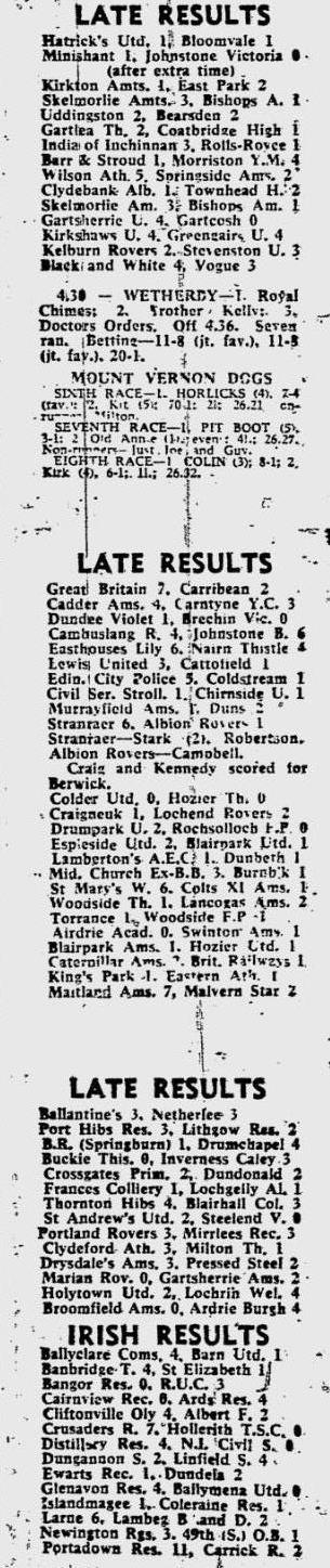| Sat 10 Oct 1959 Airdrieonians 2 Hearts 5 | |||||||