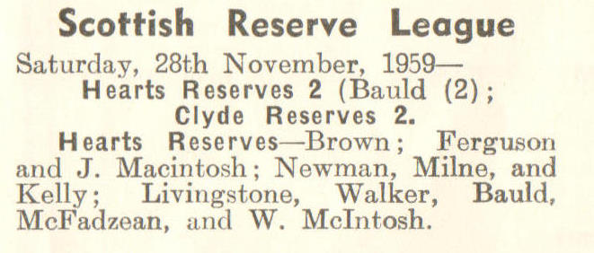 | Sat 28 Nov 1959 Clyde 2 Hearts 2 | |||||||
