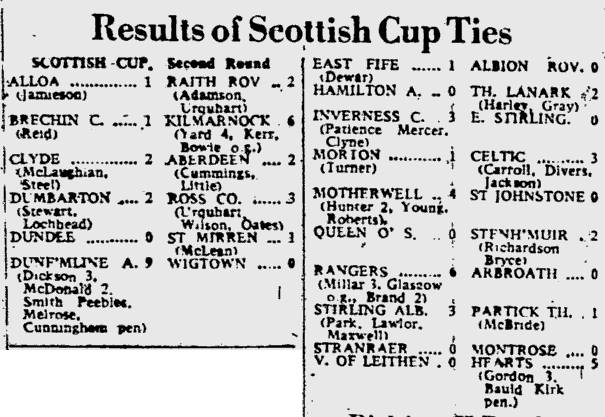 | Sat 27 Jan 1962 Vale of Leithen 0 Hearts 5 Sat 27 Jan 1962 Hibernian 2 Bolton Wanderers 0 |