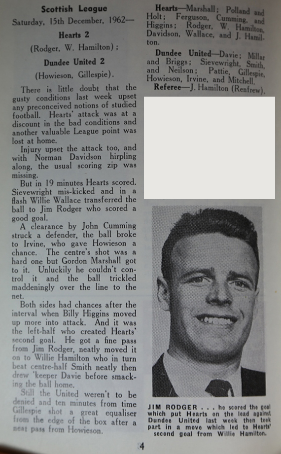 | Sat 15 Dec 1962 Hearts 2 Dundee United 2 | |||||||