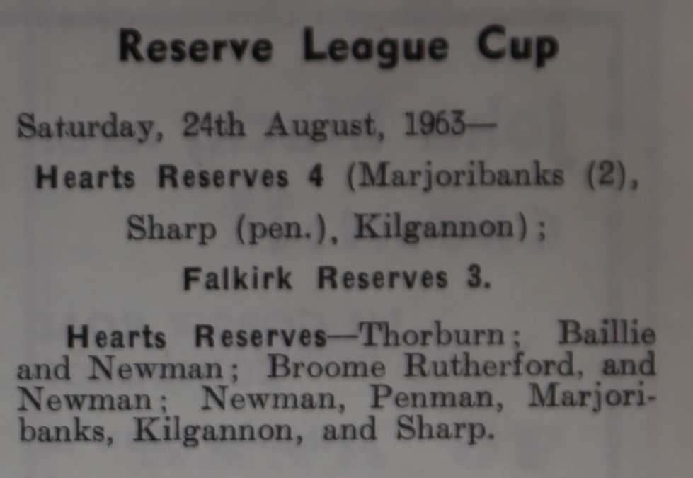 | Sat 24 Aug 1963 Falkirk 0 Hearts 3 | |||||||