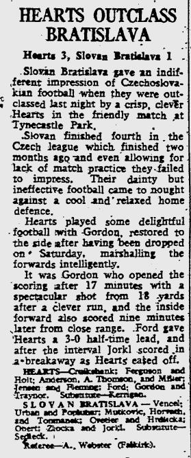 | Tue 14 Feb 1967 Hearts 3 Slovan Bratislava 1 | |||||||