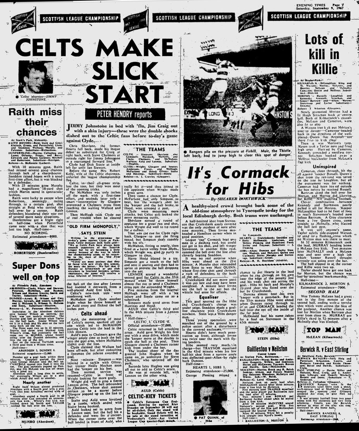 | Sat 09 Sep 1967 Hearts 1 Hibernian 4 | |||||||