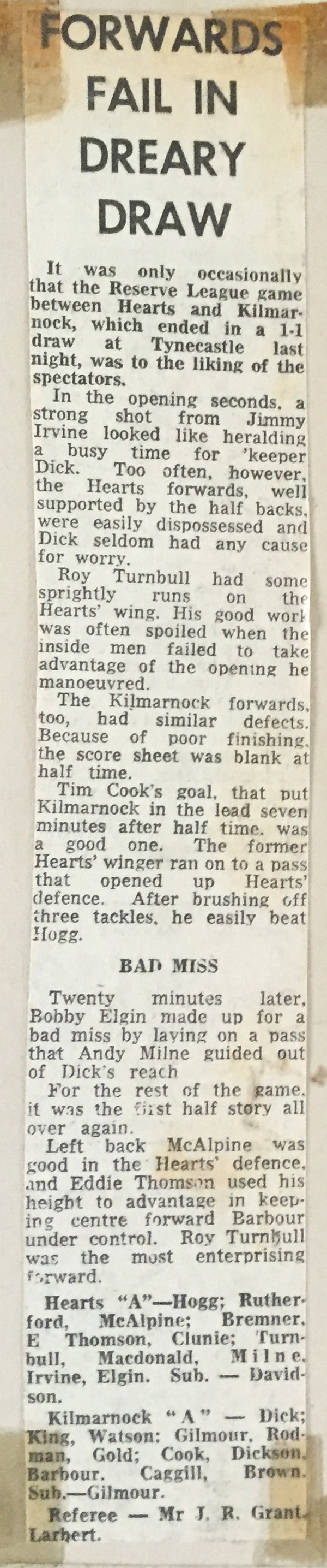 | Sat 02 Dec 1967 Kilmarnock 3 Hearts 2 | |||||||