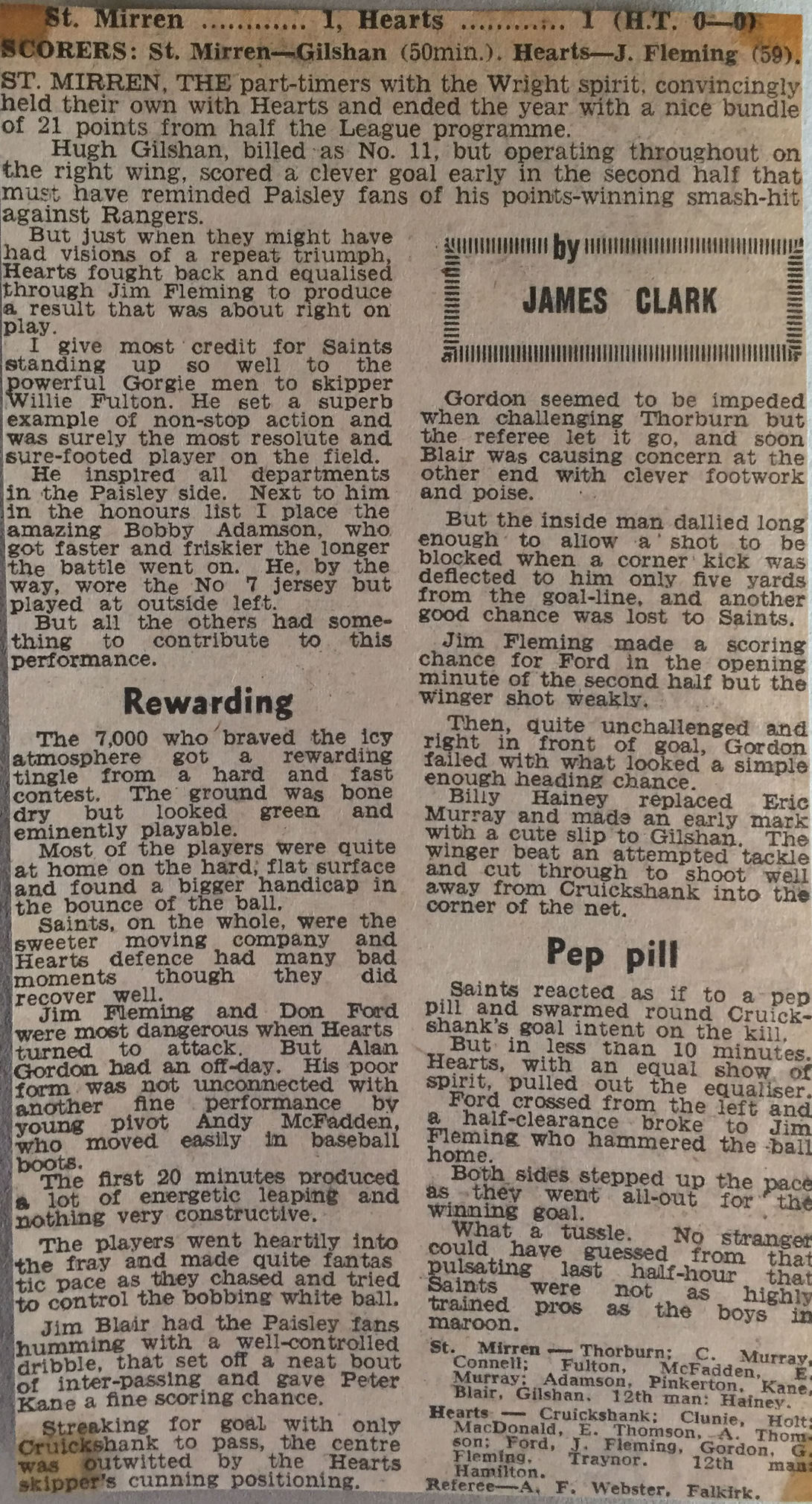 | Sat 28 Dec 1968 St Mirren 1 Hearts 1 | |||||||