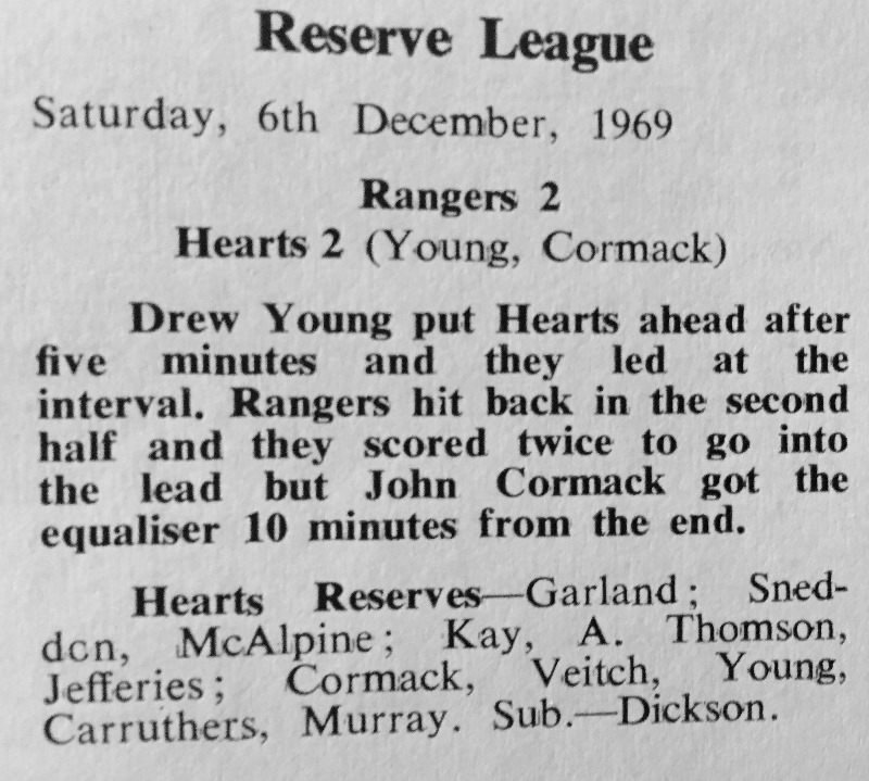 | Sat 06 Dec 1969 Hearts 1 Rangers 2 | |||||||