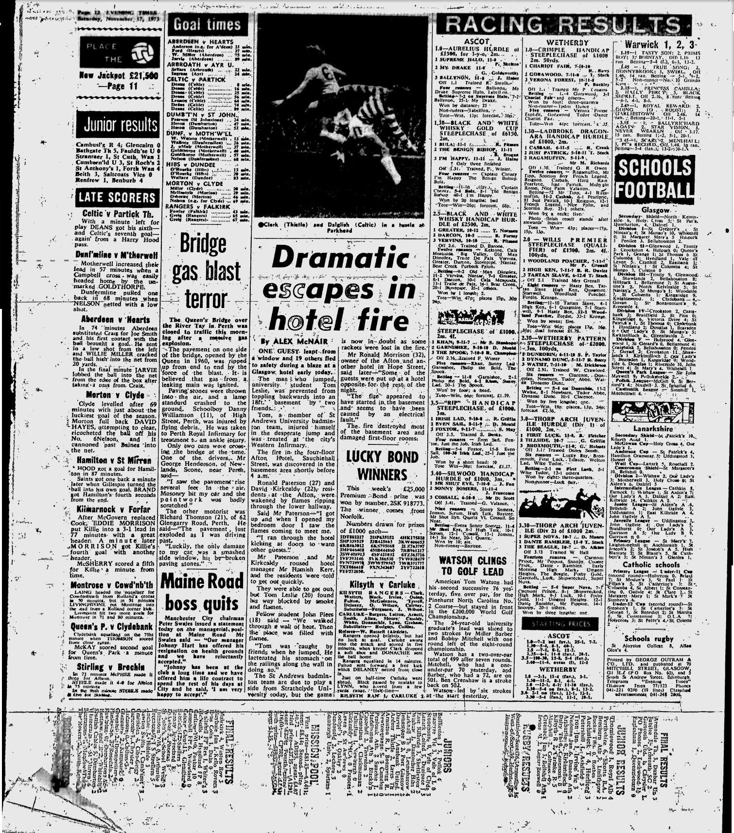 | Sat 17 Nov 1973 Aberdeen 3 Hearts 1 Sat 17 Nov 1973 Hibernian 2 Dundee 1 |