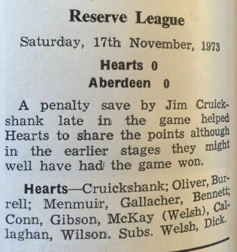 | Sat 17 Nov 1973 Aberdeen 3 Hearts 1 | |||||||