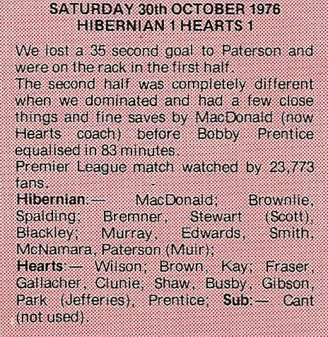 | Sat 30 Oct 1976 Hibernian 1 Hearts 1 | |||||||