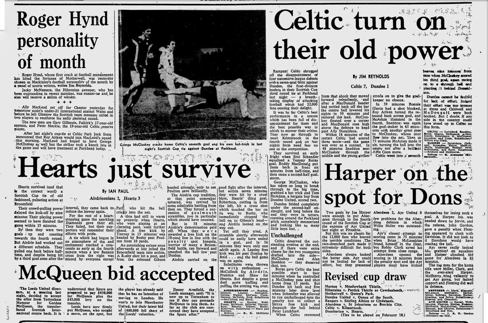 | Mon 06 Feb 1978 Airdrieonians 2 Hearts 3 | |||||||