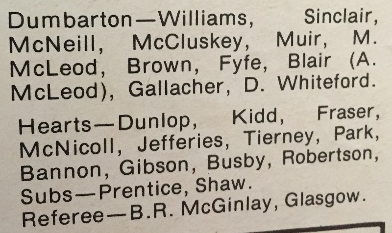 | Sat 18 Feb 1978 Dumbarton 1 Hearts 1 | |||||||